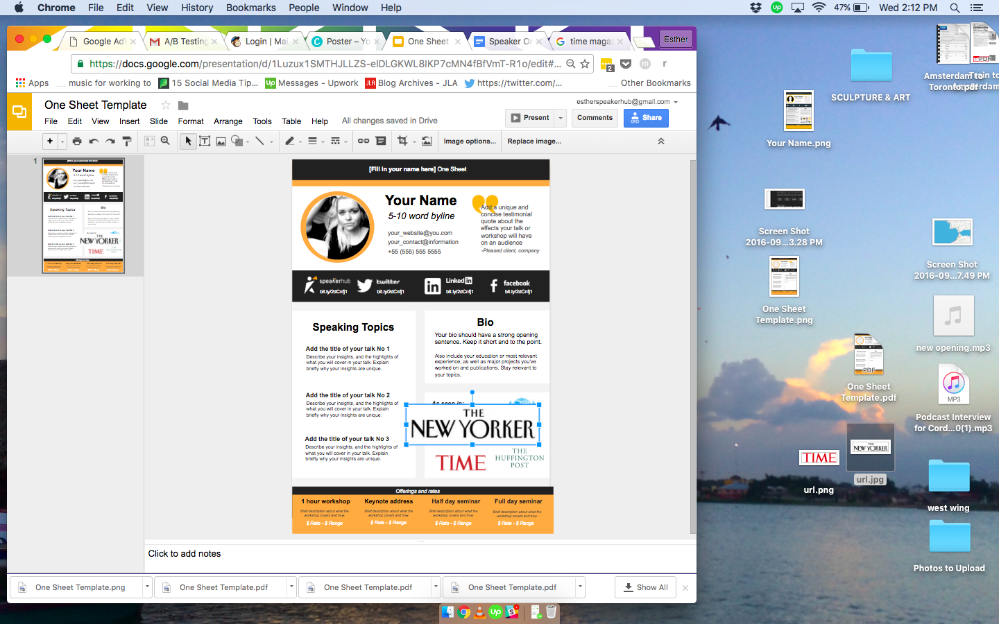 Step Two: Go to File, and scroll down until you see “Make a copy”. Save and rename it as, “[Your Name] Speaker One Sheet”.
