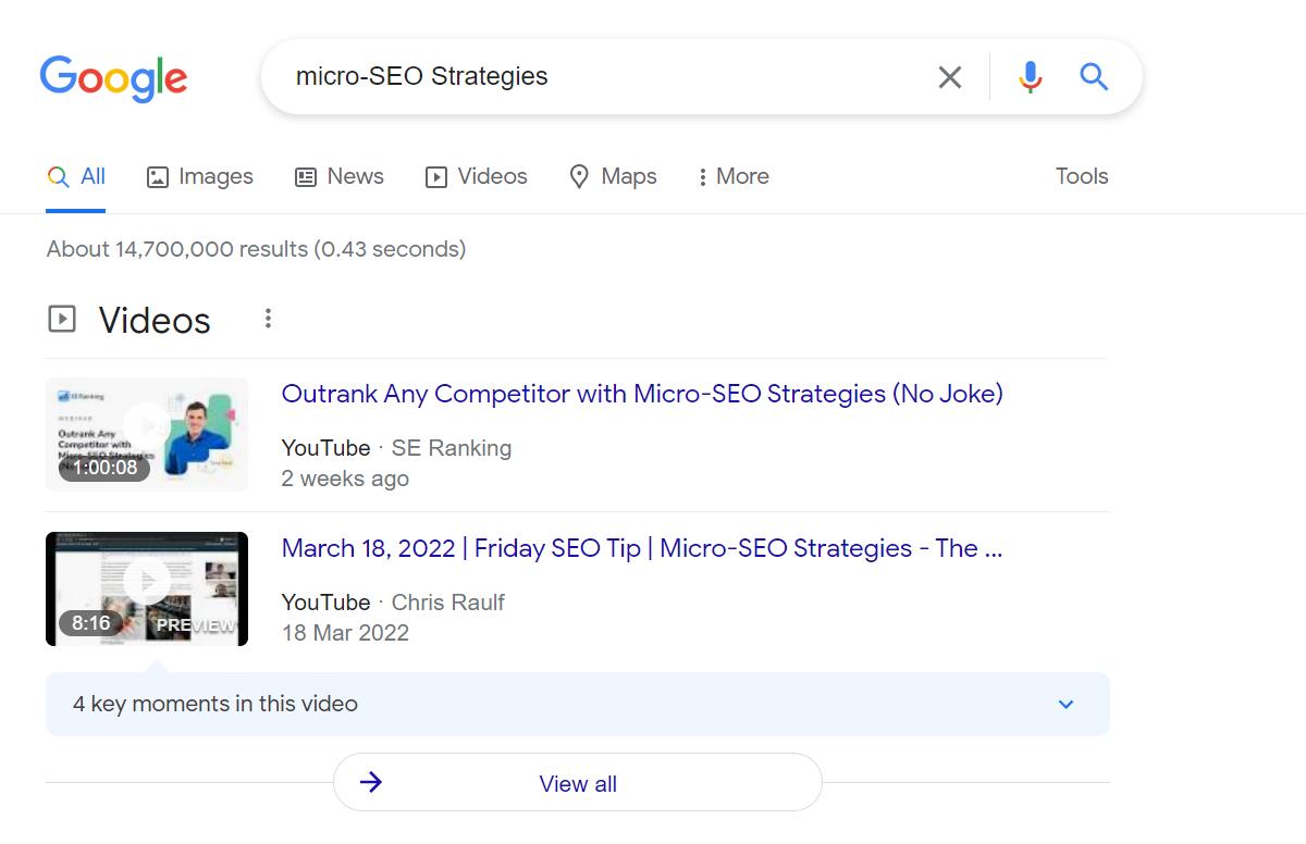 After the live webinar was completed, Seranking made the video available on YouTube and optimized it further, thus appearing on the SERPs only a fortnight after the webinar.