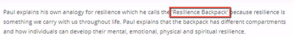 And similar too, if you scroll down. So, ‘resilience backpack’, yeah, this is sort of a problem description type that I mentioned earlier, and saying okay, so what comes then? What is the result of the talk?