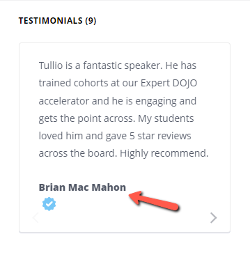Just to be positively or constructively critical about Ryan's speaker page, if you look at the testimonials, there's only one testimonial. So I think I should give him one, and also mention my background. Not only the name but the organization, SpeakerHub. That might give additional value to those viewing the testimonials.
