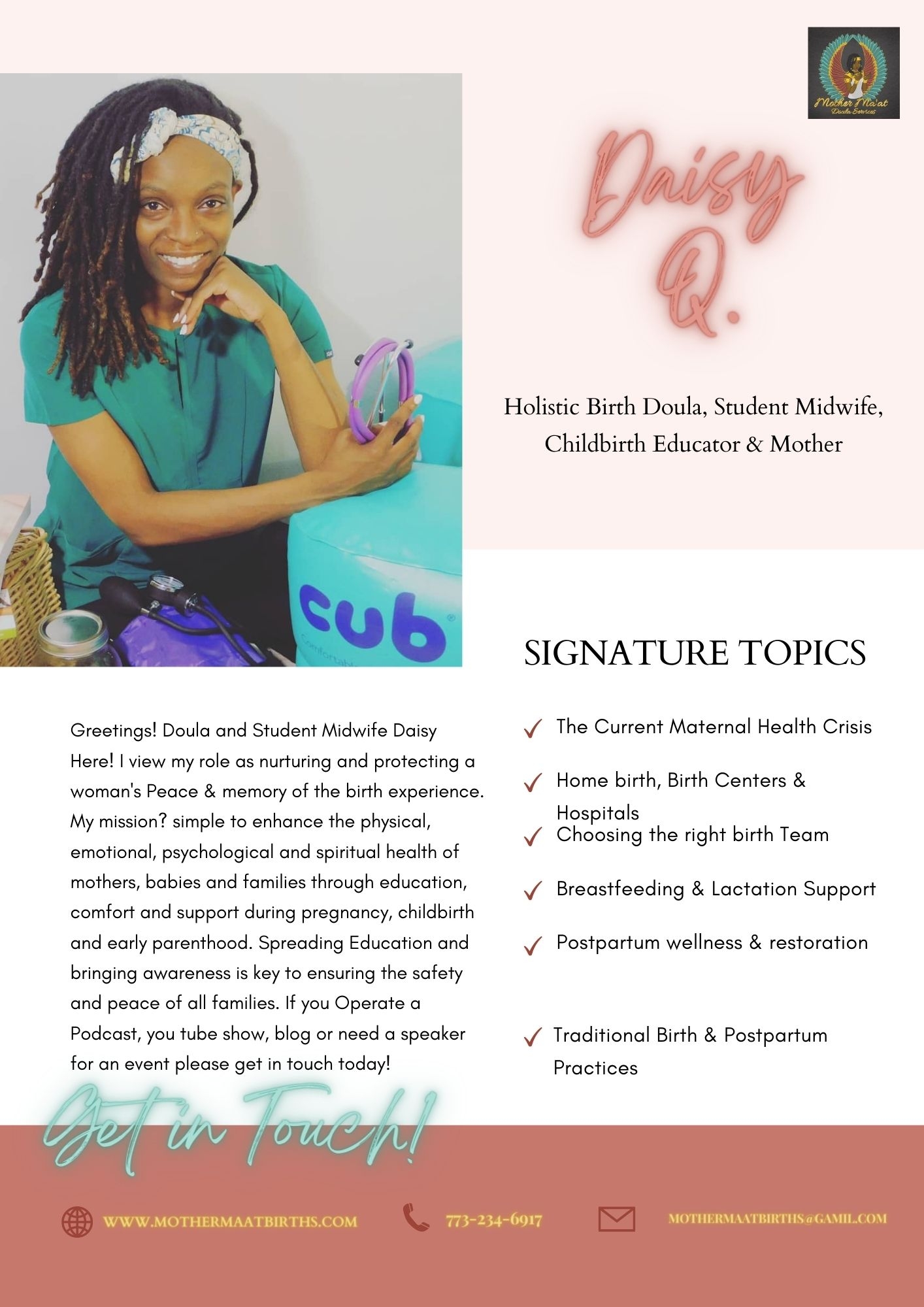 Greetings! Doula and Student Midwife Daisy Here with a goal to protect the safety and peace of moms.