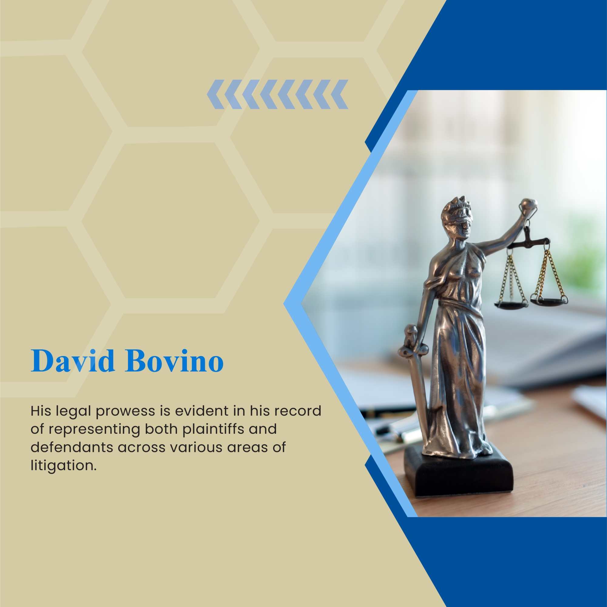 Complex Litigation Proficiency: David's strategic acumen shines in complex litigation. He represents clients in high-stakes cases, providing robust advocacy in court. His litigation services encompass a wide range of disputes, ensuring that his client's interests are fiercely protected.