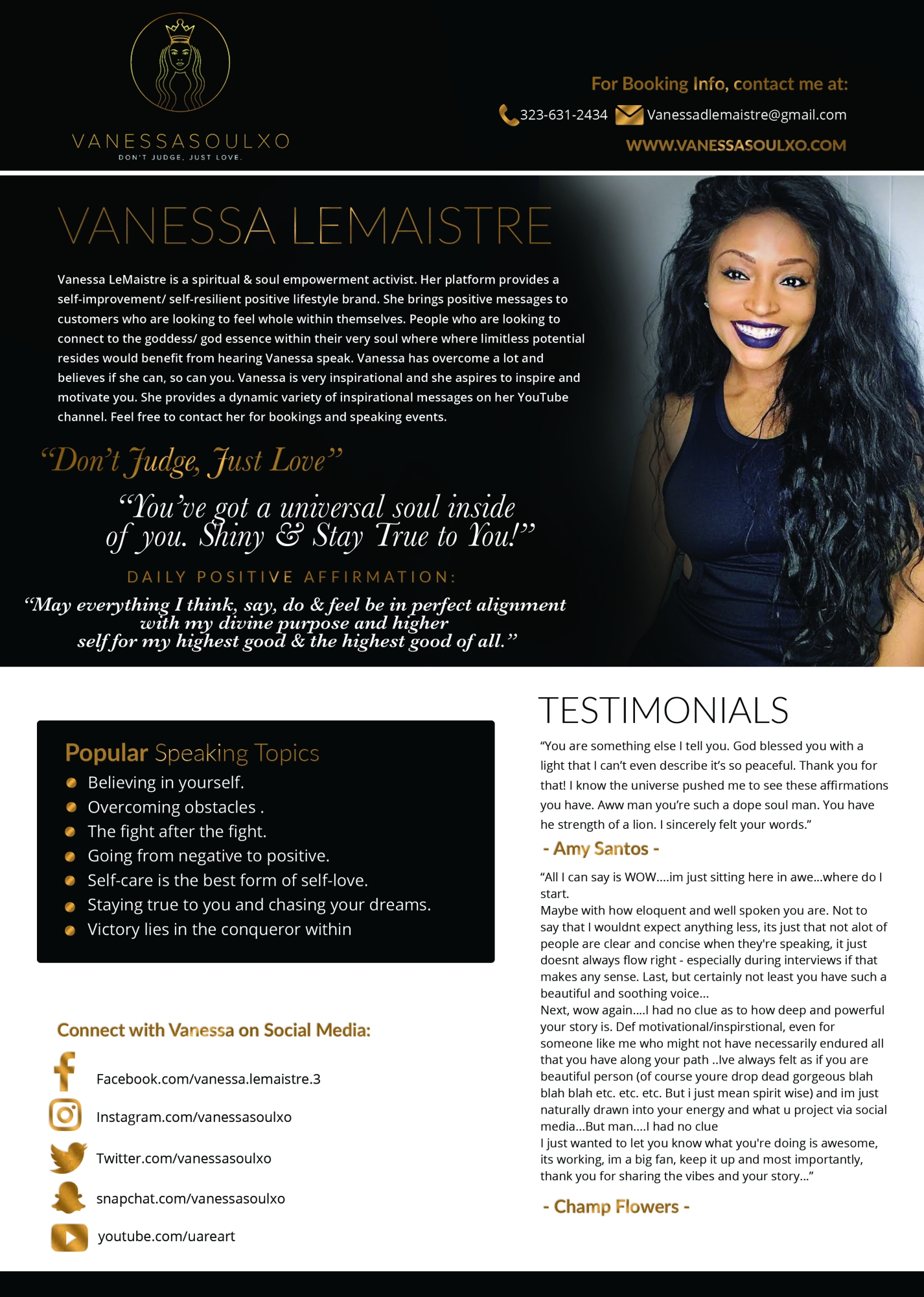 Ignite, Toastmasters, Denver Recreation Center, W.A. Monument, Naropa, Shine Restaurant, Waldorf Valley School, Pembroke Pines Middle School, Champs Charter, Captivating Speakers, Midwives College of Utah, SCJRC Chicago Youth HBCU Iniative